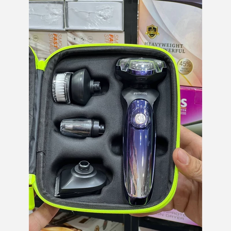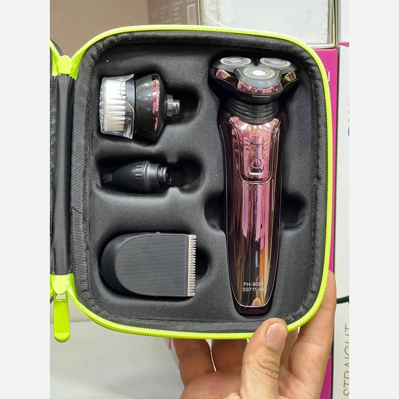ماشین اصلاح 4کاره فیلیپس دارای جعبه کادویی و کیف چرمی سه تیغ یا شیور بسیار پر قدرت خط زن و ریش تراش موزن گوش و بینی فیس واش کیفیت بسیار عالی شارژی و باطری لتیوم پیشرفته دارای صفحه نمایش دیجیتال توربو دار کیفیت بسیاار عالی