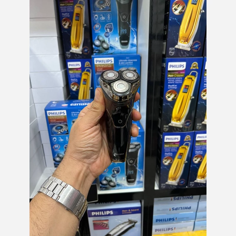 ریش تراش ضد اب فیلیپس سه تیغه تیغه متحرک جنس تیغه ها ضد زنگ کاملا ضد اب و زیر دوشی شارژی باطری پیش رفته ایتیوم دارای صفحه نمایش دیجیتال کیفیت بسیار عالی و تضمینی