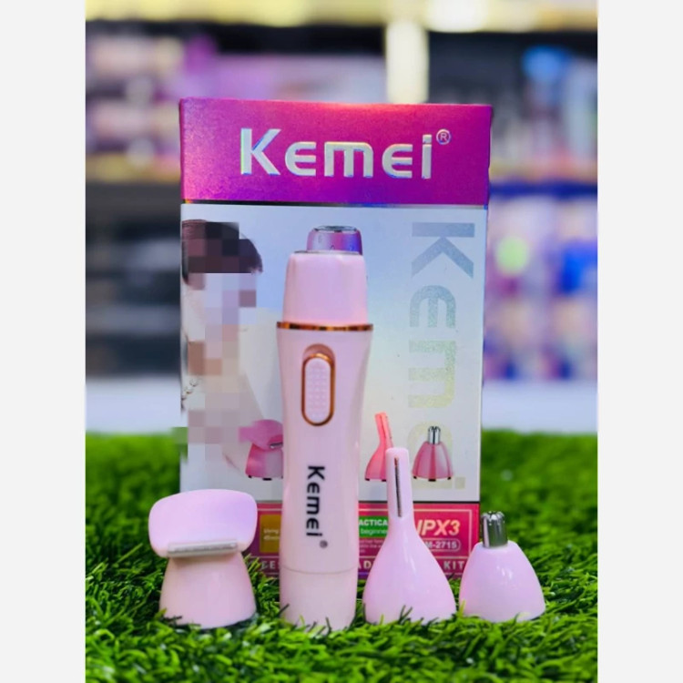 ست اصلاح زنانه KEMEi مدل KM-2715 ✅شارژی وبرقی ✅ضدآب ✅چهارکاره(اصلاح صورت-ابروزن-موزن بینی-خط زن) ✅شارژر USB ✅کیفیت فوق العاده عالی