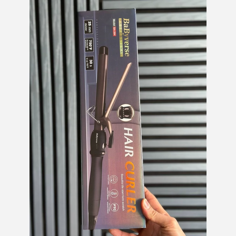 بابلیس سالنی حرفه ای بابی ورس BaByverse سایز 25 جنس لوله نانو سرامیک صفحه نمایش دیجیتالی قابلیت تنظیم دما بدنه پیریکس نشکن گیره دار مناسب سالن و خانگی