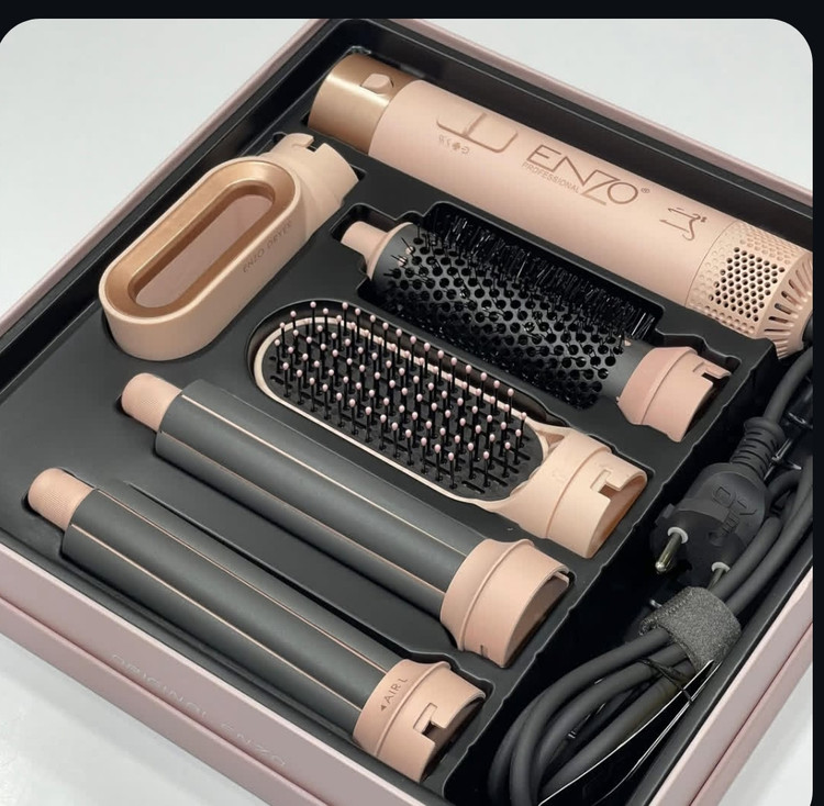 سشوار طرح دایسون یارا پنج کاره شامل سری کرلی چپ و راست، سری برس پیچ، سری شونه ای برای خشک کردن و شونه کشی همزمان موهای خیس و سری باد جمع کن