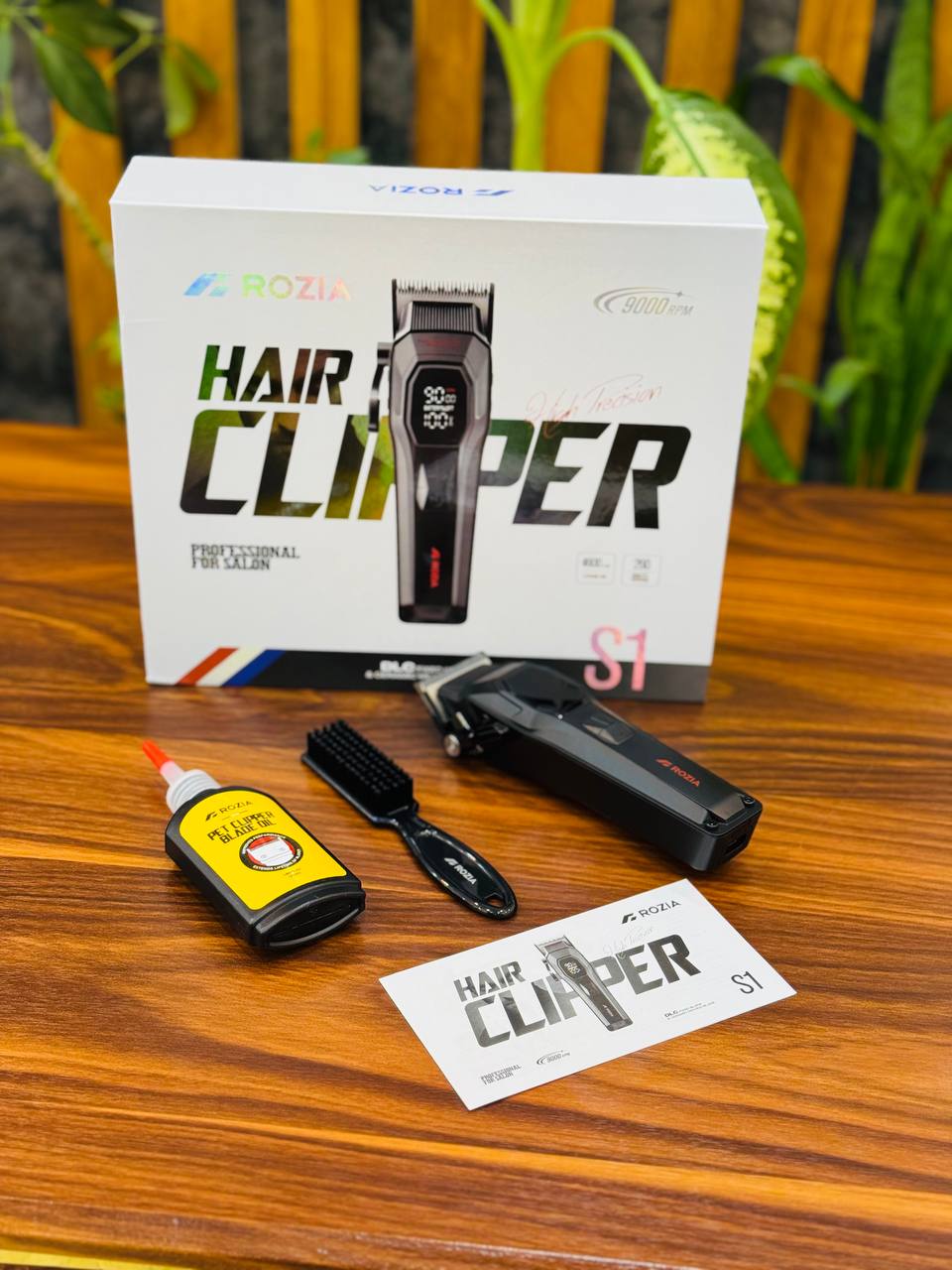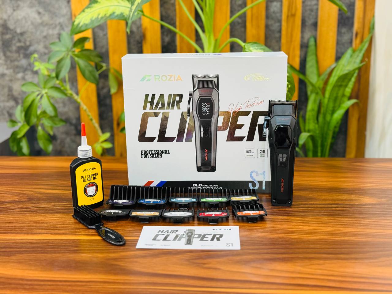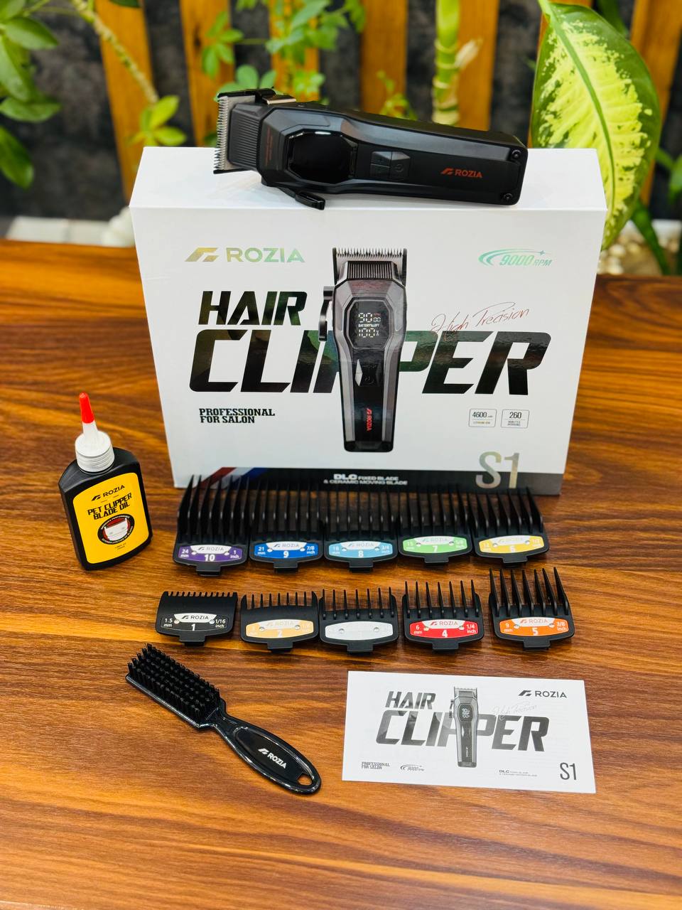 حجمزن ROZIA مدل S1 ✅شارژی وبرقی ✅دیجیتالی ✅دارای ده تا شماره اصلاح از(1mmتا10mm) ✅تنظیمقدرت موتور از 7000 تا9000 ✅شارژر USB تایپ سی ✅با هر بار شارژر 180دقیقه کار میکنه ✅حرفه ای ✅مخصوص آرایشگاه