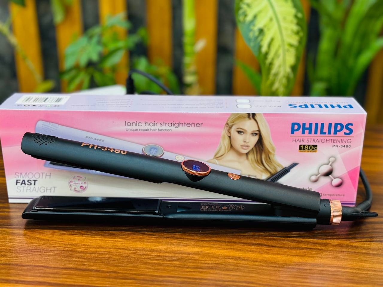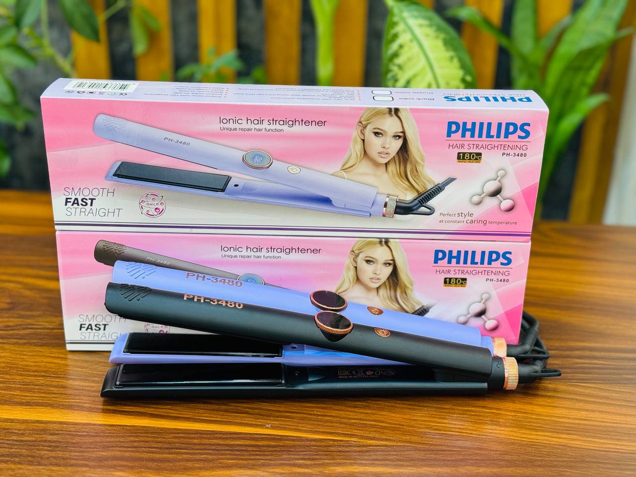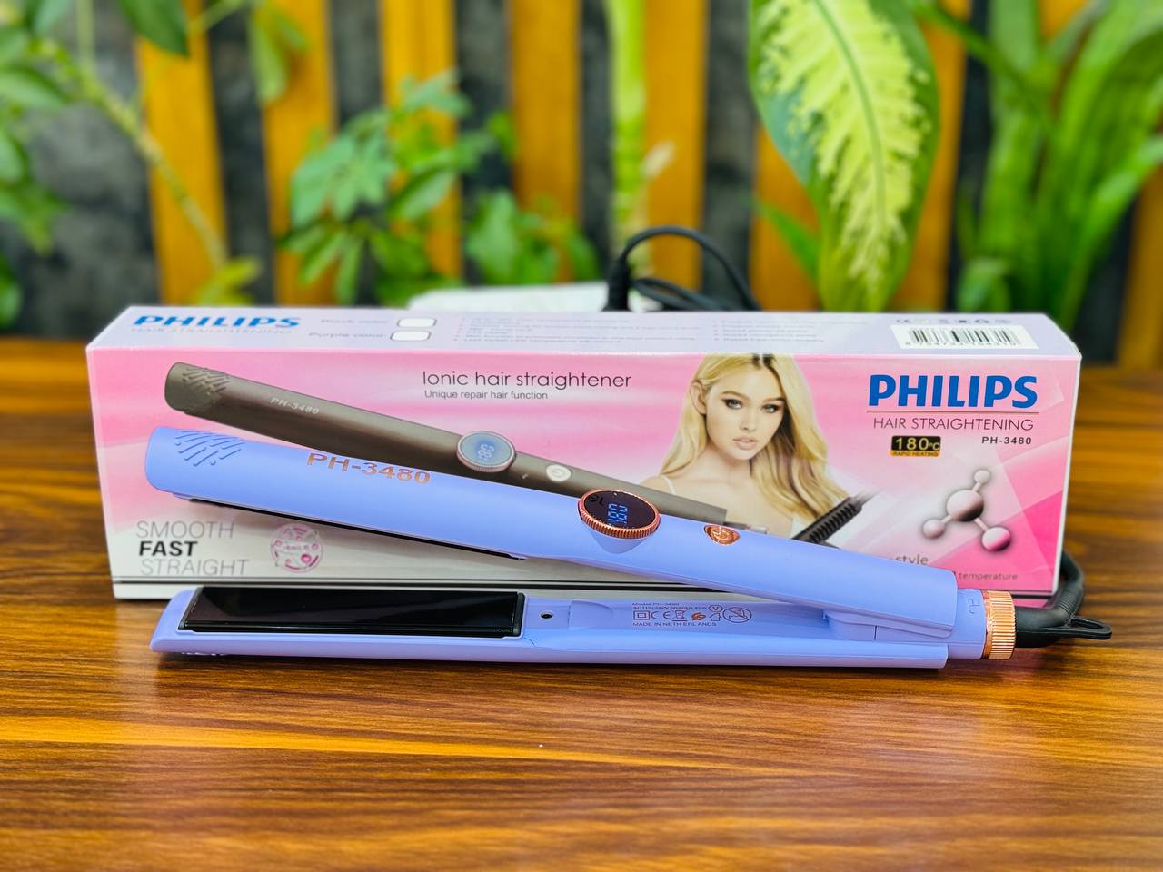 اتوموی PHILIPS مدل PH-3480 ✅دیجیتالی تا 180 درجه سانتیگراد ✅سیم چرخشی ✅طول سیم 2 متر ✅کف تیتانیوم ✅صفحه باریک ✅حرفه ای ✅در دو رنگ (مشکی و بنفش)