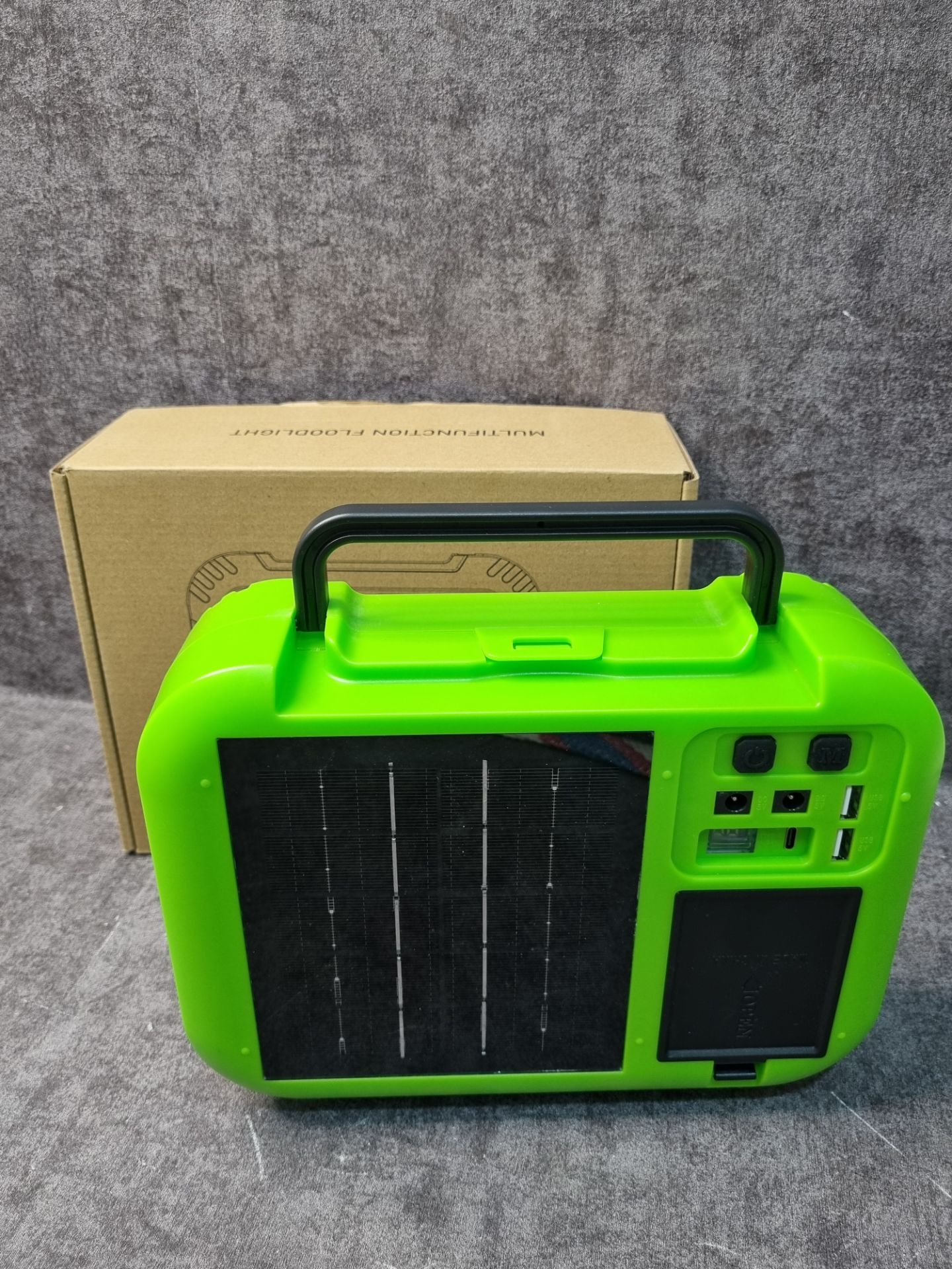 ⭕️جعبه ابزار و پروژکتور خورشیدی 🔻GZ08 ⚡️پروژکتور .چراغ قوه .پاوربانک و ابزار دستی و تبر و 3 باطری شارژی
